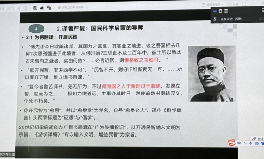 讲座尾声,苏艳教授与在线师生就晚清翻译的现代性意义、科学精神在当代的传承等话题进行了深入交流与解答。本次讲座史料详实、见解深刻,不仅梳理�“科学”概念的东渐之旅,更揭示了翻译在思想启蒙、知识体系重构与国民性塑造方面的巨大力量,为外院师生理解翻译的社会功能与历史使命提供了极具启发的视角�